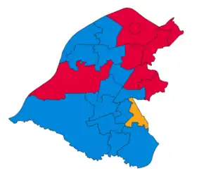 | Conservative Party | 29,371 (46.3%) | 13 (59.1%) | 13 / 22 |