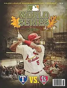 The 2011 World Series was the championship series of Major League Baseball's (MLB) 2011 season.[1] The 107th edition of the World Series, it was a best-of-seven playoff played between the American League (AL) champion Texas Rangers and the National League (NL) champion St. Louis Cardinals;[2][3] the Cardinals defeated the Rangers in seven games to win their 11th World Series championship and their second in six seasons.