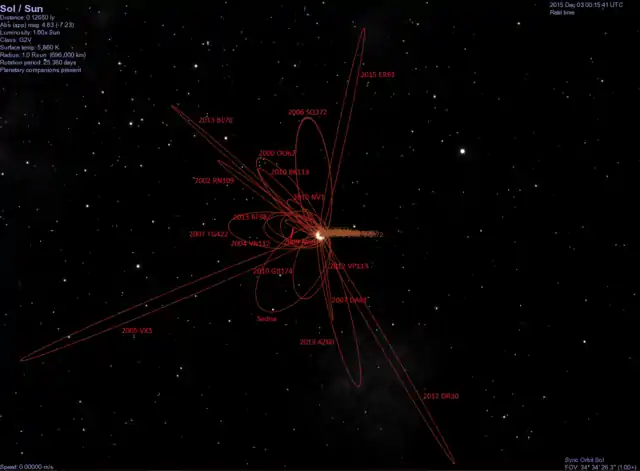 - ↑ "JPL Small-Body Database Search Engine: Asteroids and a > 100 (AU)". JPL Solar System Dynamics. Archived from the original on 6 March 2014. Retrieved 13 October 2013. (Epoch defined at will change every 6 months or so)