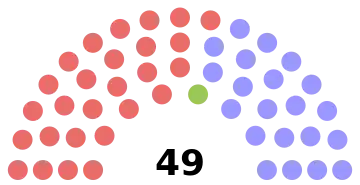 Last election 13 seats, 34.42% 42 seats, 48.84%