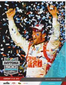 The program for the 2015 Daytona 500, featuring Dale Earnhardt Jr.'s victory during the 2014 Daytona 500.