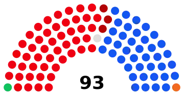 Last election 44 seats, 37.47% 42 seats, 41.32% 2 seats, 1.93%