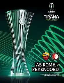 The 2022 UEFA Europa Conference League Final was the final match of the 2021–22 UEFA Europa Conference League, the first season of Europe's tertiary club football tournament organised by UEFA. It was played on 25 May 2022 at the Arena Kombëtare in Tirana, Albania,[5][6] between Italian club Roma and Dutch club Feyenoord.