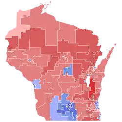 La Follette: 40–50% 50–60% 60–70% 70–80% 80–90% >90% Loudenbeck: 40–50% 50–60% 60–70% 70–80% 80–90% >90% Tie: 40–50% 50% No data | |||||||||||||||||