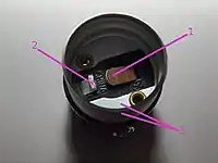 A 3-way socket has three electrical contacts. In addition to the two contacts of the standard socket, a third contact is added. This contact is positioned off-center in the bottom of the socket (contact two in photo). This extra contact matches a ring-shaped contact on the bottom of a 3-way bulb, which creates the connection for the second filament inside the bulb. A problem of these devices is that the ring contact of the socket (contact two in photo) digs into the lead seal on the lamp bulb's contact ring and this connection tends to fail early (sometimes in months), leading to intermittent flashes, popping noises, and loss of power to the low wattage filament as the lead seal on the bulb's ring alternately melts and solidifies.