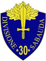 The 30th Infantry Division "Sabauda" (Italian: 30ª Divisione di fanteria "Sabauda") was an infantry division of the Royal Italian Army during World War II. The Sabauda was based in Cagliari in Sardinia and named for the Latin name of the Royal House of Savoy. After the announcement of the Armistice of Cassibile on 8 September 1943 the division joined the Italian Co-belligerent Army.[1][2]