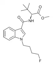4F-MDMB-BINACA (also known as 4F-MDMB-BUTINACA or 4F-ADB) is an indazole-based synthetic cannabinoid from the indazole-3-carboxamide family.[2] It has been used as an active ingredient in synthetic cannabis products and sold as a designer drug since late 2018.[3][4] 4F-MDMB-BINACA is an agonist of the CB1 receptor (EC50 = 7.39 nM),[5] though it is unclear whether it is selective for this target.[6] In December 2019, the UNODC announced scheduling recommendations placing 4F-MDMB-BINACA into Schedule II throughout the world.[7]
