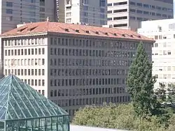 Unbuilt works include additions to the now-demolished Portland Hotel (currently the site of Pioneer Courthouse Square) and to the Doyle-designed U.S. National Bank Building. Doyle also drew up an original design for the Equitable Building which called for an Art Deco skyscraper design.[8] The building ended up being built after World War II by Pietro Belluschi in its noted and early International Style design.