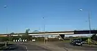A66 elevated section in Middlesbrough with the Transporter Bridge in the background
