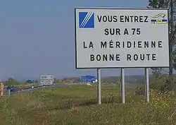 Translation: You are entering onto the A75 / La Méridienne / Have a good drive