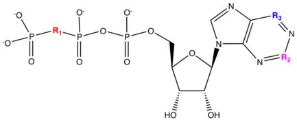 Cangrelor and ticagrelor are new classes of reversible P2Y12 receptors that have been developed to target the issues of safety (bleeding) and non-responders which the thienopyridines have. Natural ligands like adenosine triphosphate (ATP) were shown to inhibit platelet aggregation and has been identified as a weak antagonist. Cangrelor and ticagrelor are nucleotide analogues that have a chemical structure that resembles adenosine triphosphate (ATP).[21] ATP can be metabolised in cardiovascular tissues to pro-aggregatory ADP, AMP or adenosine. Replacement of anhydride oxygen between phosphorus β (Pβ) and phosphorus γ (Pγ) with di-Chloro or di-Fluoro-methylene leads to a compound that is equipotent to ATP and have a similar pKa. Because of this replacement the metabolism of ATP to pro-aggregatory can be avoided. By adding S-propyl at the chainlength it had a major impact on the activity. Addition of monosubstituted alkyl amine at the C4 position of the adenosine led to a tenfold increase in activity and also the length of the alkylamine substituent correlated with offset of effect. By adding methylsulfanylethylamino group at the C4 position and trifluoropropylsulfanyl at the chainlength leads to the formation of the drug cangrelor that has enhanced activity. Cangrelor has a 78% mean recovery of ADP induced platelet aggregation in rat after 20 minutes comparison to compound 1C which has a less than 10% recovery.[22]