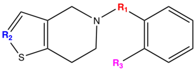 Prasugrel was developed with the metabolism in mind. This was done by replacing the ester group with metabolically stable ketone (group R1). Also the addition of ester group at the thiophene 2-position (group R2) shifted the first step of activation from CYP2C19 to esterases and therefore is prasugrel not metabolized by CYP2C19 like clopidogrel.[22]