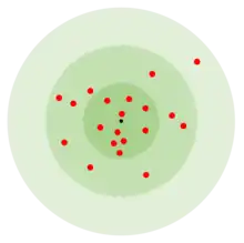 The AKM's notched rear tangent iron sight is calibrated in 100 m (109 yd) increments from 100 to 1,000 m (109 to 1,094 yd) and compared with the AK-47 the leaf's position teeth that secure the sliding adjustable notch were transferred over from the right to the left edge of the ramp. The front sight is a post adjustable for elevation in the field and has a slightly different shape with the "ears" being angled with the back of the base instead of strait and its bottom portion is more narrow compared with the AK-47. Horizontal adjustment requires a special drift tool and is done by the armoury before issue or if the need arises by an armourer after issue. The sight line elements are approximately 48.5 mm (1.9 in) over the bore axis. The "point-blank range" battle zero setting "П" on the 7.62×39mm AKM rear tangent sight element corresponds to a 300 m (328 yd) zero.[7] For the AKM combined with service cartridges the 300 m battle zero setting limits the apparent "bullet rise" within approximately −5 to +31 cm (−2.0 to 12.2 in) relative to the line of sight. Soldiers are instructed to fire at any target within this range by simply placing the sights on the center of mass (the belt buckle, according to Russian and former Soviet doctrine) of the enemy target. Any errors in range estimation are tactically irrelevant, as a well-aimed shot will hit the torso of the enemy soldier.[7]