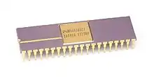 The Am9080 was a CPU manufactured by AMD. Originally produced without license as a clone of the Intel 8080, the processor was reverse-engineered by Ashawna Hailey, Kim Hailey and Jay Kumar by photographing an early Intel chip and developing a schematic and logic diagrams from the images.[1] In initial production, the chips cost about 50 cents to make, yielding 100 chips per wafer, and were sold into the military market for $700 each. This CPU operated at a speed of 2 MHz. Later, an agreement was made with Intel to become a licensed second source for the 8080, enabling both manufacturers' chips to break into markets that would not accept a single-sourced part.