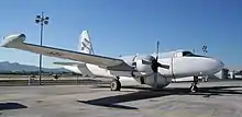Post-war, the USN quickly accelerated a program to get the radar into service. The AN/APS-20 was installed in the Douglas AD-3W Skyraider, which replaced the Avenger, and the Lockheed PO-2W Warning Star, a specialised platform developed from the Lockheed L-1049 Super Constellation airliner.[16] Both also saw service outside the USN. The latter, which could carry up to 32 servicemen for long trips, so impressed the newly formed United States Air Force (USAF) that it ordered it into service as the EC-121 Warning Star. Following a test between 24 February and 23 March 1953, the USAF used their aircraft to mount a near-continuous monitor of potential incursion by the Soviet Air Forces of American continental airspace.[17] At the same time, the Royal Navy procured fifty examples of the AD-3W as the Skyraider AEW.1. This was the first use of the radar the a non-US operator.[18] Meanwhile, in an attempt to extend endurance, in 1954 the USN ordered the installation of the radar in a blimp, the ZP2N-1W, later redesigned ZPG-2W and then, in 1962, EZ-1B.[19] The last example retired in October 1962, not only ending the use of the radar in airships but also all lighter than air operations by the service.[20]