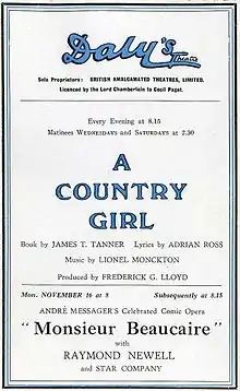 A Country Girl, or, Town and Country is a musical play in two acts by James T. Tanner, with lyrics by Adrian Ross, additional lyrics by Percy Greenbank, music by Lionel Monckton and additional songs by Paul Rubens.