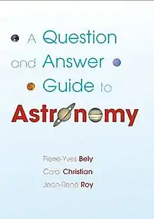 A Question and Answer Guide to Astronomy is a book about astronomy and cosmology, and is intended for a general audience. The book was written by Pierre-Yves Bely, Carol Christian, and Jean-Rene Roy, and published in English by Cambridge University Press in 2010. It was originally written in French.[1] The content within the book is written using a question and answer format. It contains some 250 questions, which The Science Teacher states each are answered with a "concise and well-formulated essay that is informative and readable." The Science Teacher review goes on to state that many of the answers given in the book are "little gems of science writing". The Science Teacher summarizes by stating that each question is likely to be thought of by a student, and that "the answers are informative, well constructed, and thorough".[2]