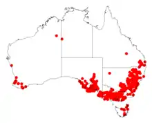 It is endemic to south eastern parts of South Australia, much of Victoria, eastern New South Wales and south eastern parts of Queensland.[3] It has become naturalised in parts of Western Australia and Tasmania.[5]