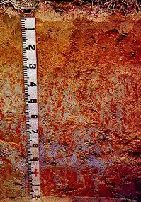 An Acrisol is a Reference Soil Group of the World Reference Base for Soil Resources (WRB).[1] It has a clay-rich subsoil and is associated with humid, tropical climates, such as those found in Brazil, and often supports forested areas.[2] In the USDA soil taxonomy,[3] Acrisols correspond to the Humult, Udult and Ustult suborders of the Ultisols and also to Oxisols with a kandic horizon and to some Alfisols.[4] The Acrisols low fertility and toxic amounts of aluminium pose limitations to its agricultural use, favouring in many places its use for silviculture, low intensity pasture and protected areas. Crops that can be successfully cultivated, if climate allows, include tea, rubber tree, oil palm, coffee and sugar cane.[4]