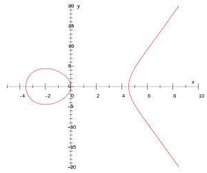 A drawing of the real points of the curve y2 = x3  x2  16x.
