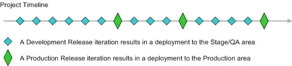 The agile unified process distinguishes between two types of iterations. A development release iteration results in a deployment to the quality-assurance and/or demo area. A production release iteration results in a deployment to the production area. This is a significant refinement to the rational unified process.