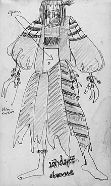 When he begins his journey into the mountains, a charming song on the magic of fire is sung by the Yajakee (the priestess). She says that the fire is the flower that has not yet bloomed on the earth. It is a talisman to the man. Bubbling pleasure and hopes are expressed in a rhythmic and leaping melody. It is sung to herald the fire goddess.