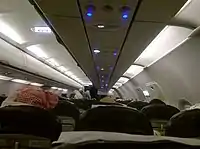 All aircraft in the fleet have a 3-by-3 layout in an all-economy cabin; and have overhead video screens. Airblue formerly had a business class section but dropped it due to exogenous economic factors.