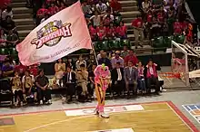 The Happinets fans are widely known as "Crazy Pink" and sometimes have overwhelming numbers at the visitors games.[37][38][39] The hoop-crazed fans light up arena with "Bigabiga", pink glow sticks and sing the prefectural anthem before the game.[40] The Happinets home court rocks with another stadium anthem "Fly Again" by Man with a Mission, and CNA Arena Akita is one of the hottest and loudest basketball venues in Asia.[41][42][43] The Akita Airport limousine buses have the painted images of the Happinets and Blaublitz Akita.[44]