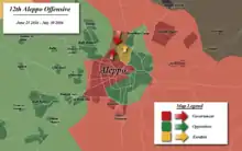The Aleppo offensive (June–July 2016) refers to a military operation launched on the northern outskirts of Aleppo in late June 2016, by the Syrian Army. The aim of the offensive was to cut the last rebel supply line into Aleppo city.[32][33]