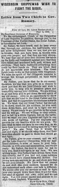 15. The Chippewa Embassy, The Weekly Pioneer and Democrat Vol. XIV, No.14, Sept. 19, 1862, p.5, Chronicling America, Library of Congress, 2023