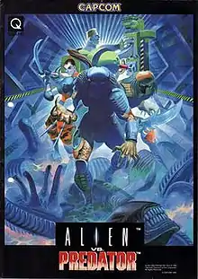 Alien vs. Predator (エイリアンVSプレデター) is a 1994 beat 'em up video game developed and released by Capcom for the CPS-2 arcade game system. It is based on the science fiction franchise of the same name. Introducing an original fighter to the game: Lt. Kurosawa, the players take control of up to three from the selection of four cyborgs and Predator characters in a battle against the Alien hordes and rogue human soldiers. The game was very well received by the public and media publications, but was never ported to any home systems.