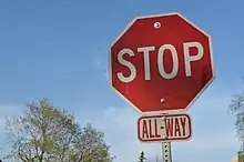 - ↑ "Manual on Uniform Traffic Control Devices, 2003 revised version, section 2B-.07 Multi-Way Stop Applications" (PDF).