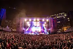 The festival was first held at the Union Market in Washington, D.C,[3] expanding to the 15,000 capacity Yards Park in 2016.[4] The festival moved to Columbia in 2021, and has since been held at the 20,000 capacity Merriweather Post Pavilion.[5] The festival is cited for its support and inclusion of LGBT artists, and women-focused lineups.[6][7][8]