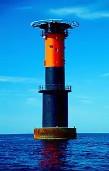 Markingsblack tower with a broad red band in the upper part