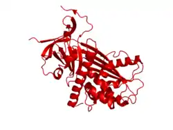 Alpha 2-antiplasmin (or α2-antiplasmin or plasmin inhibitor) is a serine protease inhibitor (serpin) responsible for inactivating plasmin.[5] Plasmin is an important enzyme that participates in fibrinolysis and degradation of various other proteins. This protein is encoded by the SERPINF2 gene.[6]