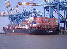 APL, formerly called American President Lines Ltd., is an American container shipping company that is a subsidiary of French shipping company CMA CGM. It operates an all-container ship fleet, including nine U.S. flagged container vessels.[1]