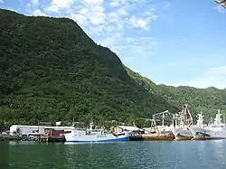 The following year, the U.S. formally annexed its portion, a smaller group of eastern islands, one of which contains the noted harbor of Pago Pago.[17] After the United States Navy took possession of eastern Samoa for the United States government, the existing coaling station at Pago Pago Bay was expanded into a full naval station, known as United States Naval Station Tutuila and commanded by a commandant. The Navy secured a Deed of Cession of Tutuila in 1900 and a Deed of Cession of Manuʻa in 1904 on behalf of the U.S. government. The last sovereign of Manuʻa, the Tui Manuʻa Elisala, signed a Deed of Cession of Manuʻa following a series of U.S. naval trials, known as the "Trial of the Ipu", in Pago Pago, Taʻu, and aboard a Pacific Squadron gunboat.[18] The territory became known as the U.S. Naval Station Tutuila.