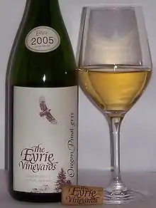 For bottles labeled with a varietal, at least 75% of the grapes used to make the wine must be of that varietal. In Oregon, the requirement is 90% for certain varietals, such as pinot noir. At least 95% of the wine must be from a particular vintage for that year to appear on the label. Prior to the early 1970s, all grapes had to be from the vintage year. Additionally, all labels must list the alcohol content based on percentage by volume, state that the wine contains sulfites, and carry the Surgeon General's warning about alcohol consumption.[25]