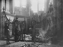 The stained glass windows of the church were removed to protect them during both world wars, and the church suffered only minor damage. However, in 1920, some of the windows, which were being stored in the workshop of a master glass maker, for their protection, were destroyed by a fire.