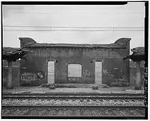 Commuter rail operations under Conrail were short-lived, turned over to the New Jersey Department of Transportation for service in 1980. At this point, the DOT (and the newly formed New Jersey Transit) shut the inside waiting room of the deteriorating station depot. On June 22, 1984, along with buildings of a similar purpose, Ampere station was added to the National Register of Historic Places.[6] However, the station's interior continued to fall into disrepair. The 1921-constructed westbound shelter was demolished in 1986. The next year, New Jersey Transit petitioned the Commissioner for Natural and Historic Resources to demolish the station. The commissioner directed New Jersey Transit to first stabilize the station and either sell it to East Orange or advertise the station for lease or sale to a private developer, but little was accomplished.[10]