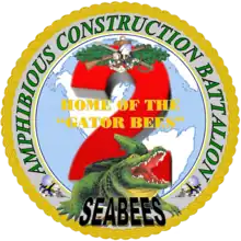 During WWII there were five battalions tasked with pontoons, barges and the building of ship to shore causeways: CBs 70, 81, 111, 128, and 302.[8] The 105th Naval Construction Battalion was recommissioned 22 January 1947 at Little Creek, Virginia, and was placed under the operational control of Commander, Amphibious Training Command, U.S. Atlantic Fleet. At this time, the battalion "absorbed the duties and materials of the old Pontoon Training Unit of COMPHIBTRALANT".[9] When Naval Beach Group Two was established in 1948, the 105th NCB became a component of that command. In October 1949, the 1st NCB was recommissioned at Little Creek also. The Navy changed CB designations that year and they both became Mobile Construction Battalions MCBs. This lasted less than a year for the 105th because the battalion was re-designated Amphibious Construction Battalion 2 (PHIBCB 2) in 1950. By the time the Korean War broke out the Naval Construction force had been reduced to 2,800 men,[10] MCB 1, ACB 1, and ACB 2. That quickly changed by December as the force was rapidly expanded.