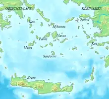 - Ancient Thera (See the end of the German Wikipedia article for a list of the German language publications of Friedrich Hiller von Gaertringen and Wolfram Hoepfner about their excavations)