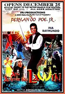Ang Alamat ng Lawin (lit. 'The Legend of the Hawk') is a 2002 Filipino fantasy swashbuckler film produced and directed by Fernando Poe Jr. — his final directorial work.[3] The film stars Poe and Ina Raymundo along with new childstars Cathy Villar, Franklin Cristobal, Ryan Yamazaki, and Khen Kurillo.[4]