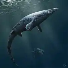 Angolasaurus ("Angola lizard") is an extinct genus of mosasaur. Definite remains from this genus have been recovered from the Turonian and Coniacian of Angola,[1] and possibly the Coniacian of the United States, the Turonian of Brazil,[2] and the Maastrichtian of Niger.[3][4] While at one point considered a species of Platecarpus,[5] recent phylogenetic analyses have placed it between the (then) plioplatecarpines Ectenosaurus and Selmasaurus, maintaining a basal position within the plioplatecarpinae.[6]