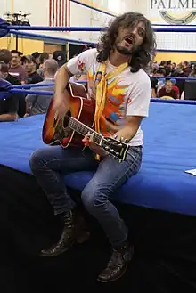 On May 17, Chikara announced the fifth match for the event, which would see commentator and ring announcer Gavin Loudspeaker take on Tim Donst.[1] Following Under the Hood, where he failed to capture the Chikara Grand Championship from Eddie Kingston, Donst continued a storyline mental collapse that had started in June 2012, when he lost his hair at Chikarasaurus Rex: How to Hatch a Dinosaur,[50] ultimately revealing that his "grand plan" was still in effect and did not involve him winning the Grand Championship, but instead unhinging Kingston and turning him into the "destroyer of Chikara" so that he himself could "rise up as the martyr of pro-wrestling".[51] In the start of 2013, Donst adopted Steve "The Turtle" Weiner and Veronica as his new followers, while also retaining Jakob Hammermeier as a follower.[41][52] The rivalry between Donst and Loudspeaker began following Chikara's first shows of 2013, when Donst took exception to Loudspeaker's claim that he was "not main event material".[53] Loudspeaker's outrage at Donst was fueled by his abusive treatment of his followers, especially Steve Weiner.[53] Several verbal exchanges between the two eventually led to Donst attacking Loudspeaker first on April 6, after losing to Archibald Peck, and again on May 4, following a loss against Saturyne, both times cutting off a lock of his hair.[32][45][53] Being a non-wrestler, Loudspeaker requested Chikara's Director of Fun Wink Vavasseur for an opportunity to manage one of his friends to take on Donst at Aniversario: Never Compromise.[54] However, Vavasseur turned down the request, remembering how Loudspeaker had questioned his abilities and capabilities in the past, and instead booked a match between Loudspeaker and Donst for the event, calling it a "character-building exercise".[22][55] In a blog entry on Chikara's official website, Loudspeaker announced that he had started training at The Wrestle Factory under the likes of Green Ant and Hallowicked, while also making a plea for Donst's longtime associate Jakob Hammermeier to come to his senses and realize that Donst was not his friend.[11][22] On May 24, Chikara announced an added stipulation for the match, where the loser would have his hair shaved off.[1]