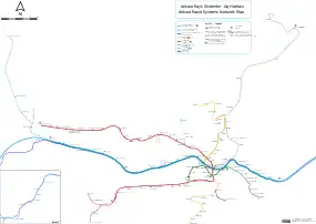 The Ankara Metro (Turkish: Ankara Metrosu) is the rapid transit system serving Ankara, the capital of Turkey. At present, Ankara's rapid transit system consists of two metro lines – the Batıkent Metrosu (M1) and the new Keçiören Metrosu (M4) line opened in 2017, along with the Ankaray line.[2] The Ankaray, the M1 and M4 lines, together transported 104.1 million passengers in 2014.[1] That corresponds to a ridership of approximately 289,155 per day. In February 2019 all the lines that used to run M1, M2 and M3 were merged to create one line, M1.[3]