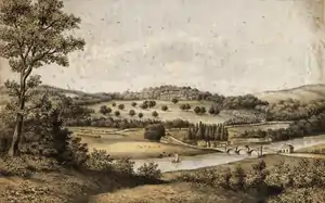 The medieval mansion stood in a "fine timbered park" dating back to the 13th century or before.[5][8] A deerpark may have been established as early as 1422, but is known to have been in existence by about 1540.[9] During the reign of Richard II (1377–1399), there was a fishery on River Torridge and a dovecote.[9]