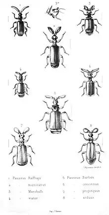 - ↑ Di Giulio, Andrea; Maurizi, Emanuela; Hlaváč, Peter; Moore, Wendy (2011). "The long-awaited first instar larva of Paussus favieri (Coleoptera: Carabidae: Paussini)". European Journal of Entomology. 108 (1): 127–138. doi:10.14411/eje.2011.016.