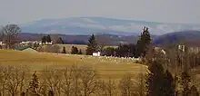 This section is a bit misleading since there are hills as high as 1,200 feet (366 m) in this section. It is separated from the rest of the Piedmont sections due to the distinctive rock types found here. Also called the Triassic Basin, most of the bedrock are red sandstone, siltstone, and shale. A few formations are brown and black. The sediment accumulated during the rifting of Pangea in the Triassic age. Also, a basaltic igneous rock called diabase formed dykes and sills later in the Jurassic as the Atlantic Ocean began to form.[9] Much of the rocks from this area have been eroded away, but the more erosion resistant diabase has left hills and small elevated regions throughout the section. The erosion patterns of these rocks played a pivotal role in the Battle of Gettysburg.[10]