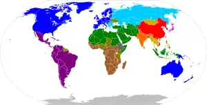 Samuel P. Huntington argued in his Clash of Civilizations theory that after the Cold War, cultural differences between the West (in dark blue) and other civilizations would be the main source of conflicts.[1]